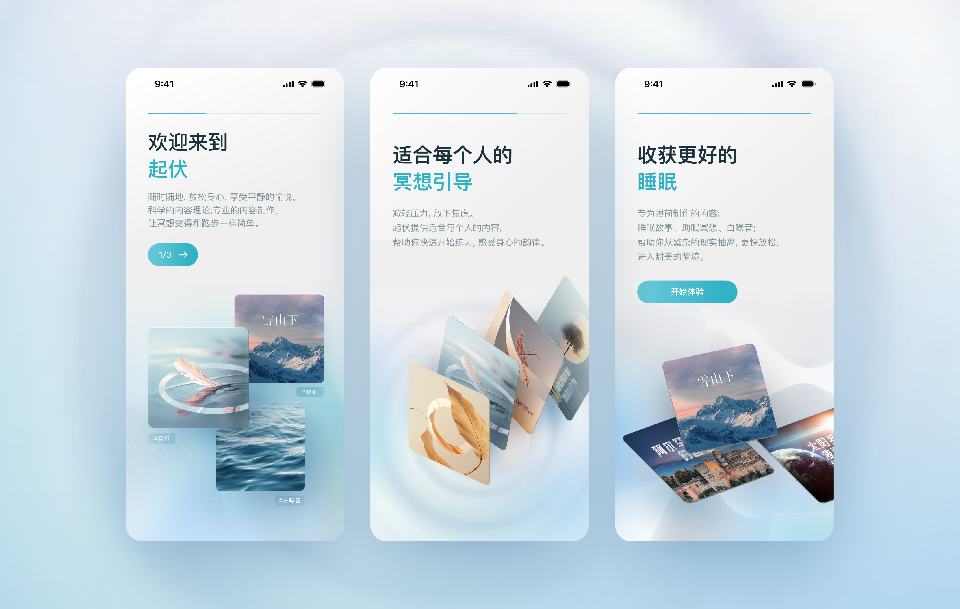 不同于其他产品, 「起伏」以大自然为依托,为用户提供多类型身临其境的冥想内容,专注于高质量声音内容制作,置身于自然中,唤起我们深呼吸的本能,感受到内心深处的平静与宁静。将不安与焦虑按下暂停键,暂时抹除,缓慢下来与内心的声音对话,使冥想成为生活短暂栖息的秘密角落。