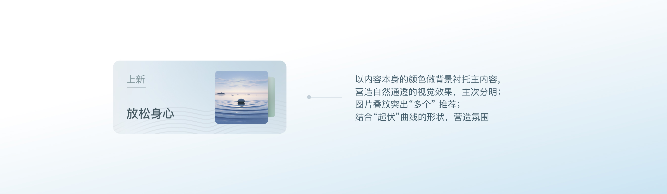 思考如何在保持极简的情况下再自然的融入元素增加浏览中的氛围感,以极简的方式赋予模块更丰富的氛围感,在模块右上方巧妙地引入相关联的图片背景,这样的设计思路也贯穿始终。